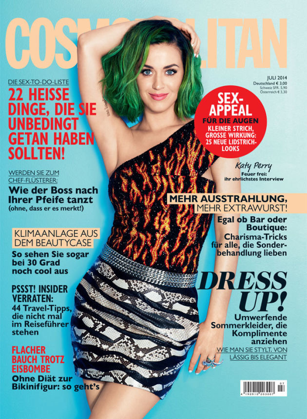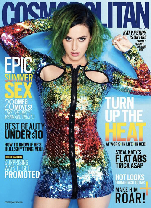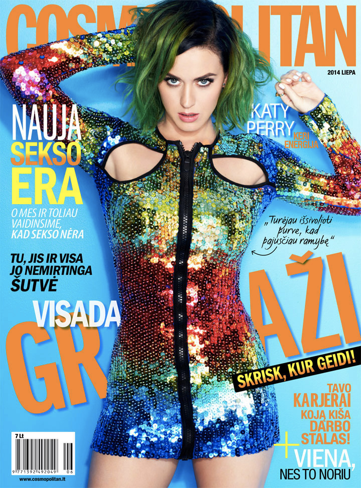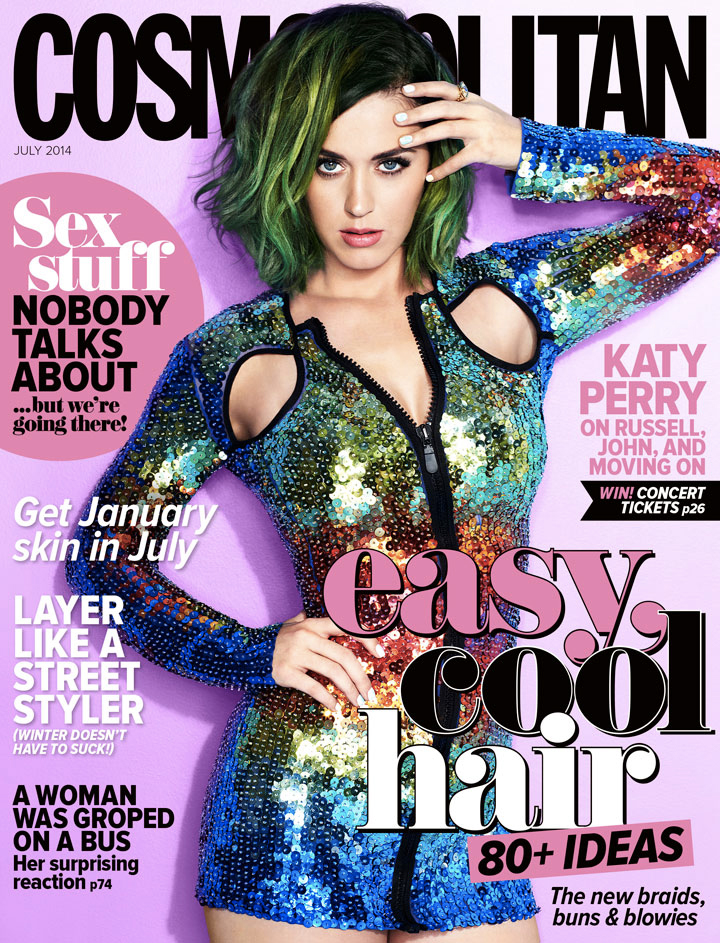 Quei furboni di Cosmopolitan si sono accorti di questo non proprio piccolo particolare e hanno deciso di dare proprio a Katy Perry tutte le copertine del mondo del numero di luglio di Cosmopolitan, ben 62. Non sono comunque tutte uguali: hairstyling e make-up sono gli stessi, ma si contano almeno cinque cambi d’abito. In pratica, Katy Perry è la prima global cover girl di Cosmopolitan (ma credo di tutte le riviste di moda in generale), e questo lo deve proprio alla sua capacità di non prendersi troppo sul serio (oltre che alla sua voce, bellezza, simpatia, ecc…) che l’hanno resa un’icona a livello mondiale. Le ragioni devono essere senz’altro queste, anche perché altrimenti verrebbe da chiedersi: “perché lei e non Beyoncé?” Per fare un esempio.