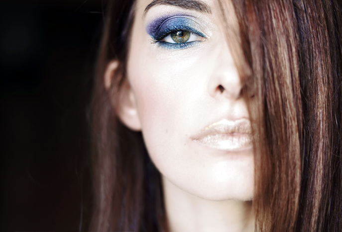 Quando ho provato gli ombretti in crema Vamp!, ho deciso subito che avrei puntato tutto sugli occhi: li ho usati tutti e tre, partendo con l’ombretto dorato all’interno, poi blu al centro, e viola all’esterno. Il colore è pieno e corposo, e la texture permette una stesura facile e veloce. Infine, sia sulla palpebra mobile che nella parte interna dell’occhio, ho usato la Multiplay Matita Occhi Triplo Uso: kajal, eyeliner e ombretto tre in uno. La texture morbida permette infatti di essere sfumata grazie all’apposito pennellino: tratto deciso e tenuta long lasting. Mai più senza!