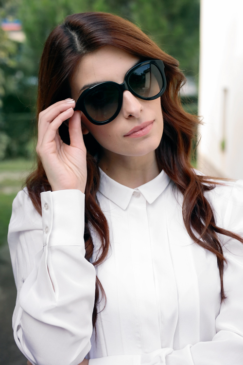Shirt and skirt Cristina Miraldi – Shoes Officine Marini – Sunglasses Max Mara