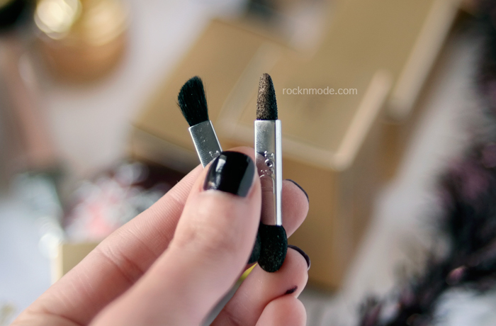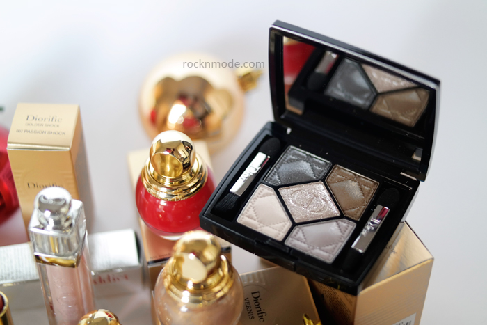 Sono due le palette della Golden Shock, io ho provato la 046 Golden Reflection. I colori sono quelli dell’acciaio, del bronzo e, ovviamente, dell’oro. Nella Golden reflection, al centro, una polvere molto delicata da stendere con l’apposito pennellino pensato per sovrapporre i glitter (molto piccoli) senza portare via il colore alla base. Le diverse combinazioni permettono la realizzazione di un make-up naturale o sofisticato, e all’interno della confezione troverete un foglio illustrativo con i consigli di Dior. I colori di questa palette sembrano molto forti, in realtà sulla palpebra sono più di quanto non sembri.