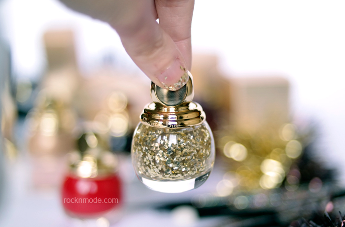 Gold Leaf Effect Top Coat – Un particolare top coat con piccole foglie dorate, ovviamente si può portare da solo, oppure stesso su un’altra colorazione per dare un tocco splendente. Per stenderlo come in foto, mi sono avvalsa di un pennellino, considerate che al massimo con qualche pennellata lascia 4 o 5 foglie, un po’ di più sul pollice, e l’effetto è molto più elegante e delicato. La brillantezza, così come tutti gli smalti Dior vernis, resta inalterata per giorni.