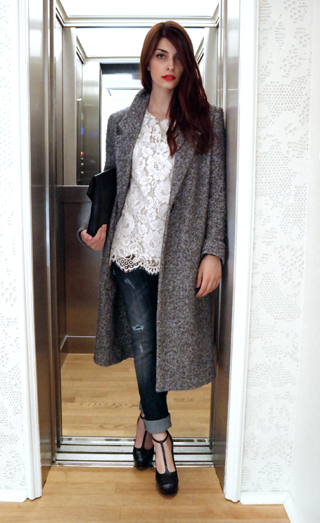 Cappotto maschile, pizzo e mary jane