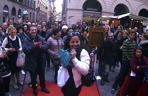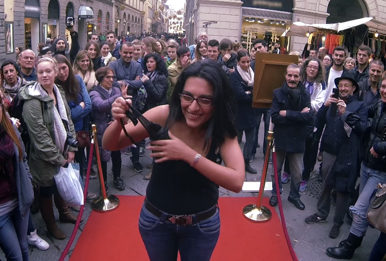 Anniversario e lancio della nuova versione della Carinabag convertono, infatti, in un’iniziativa secondo me geniale, testimoniata da un video divenuto subito virale: in Via dei Calzaiuoli a Firenze, è stato posizionato un distributore di borse (a forma di Carinabag!) che dava la possibilità ai più audaci di vincere proprio l’ultima arrivata in casa Braccialini. Il tutto mosso da una provocazione: “A cosa sei disposta a rinunciare per una Carinabag?”